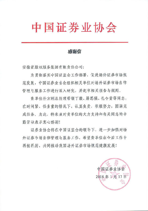 中證協(xié)致安徽股權(quán)服務(wù)集團(tuán)感謝函