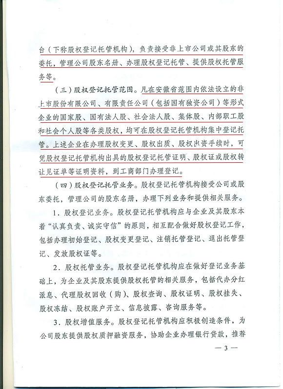 關于規范開展非上市公司股權集中登記托管的指導意見(皖金[2014]64號])